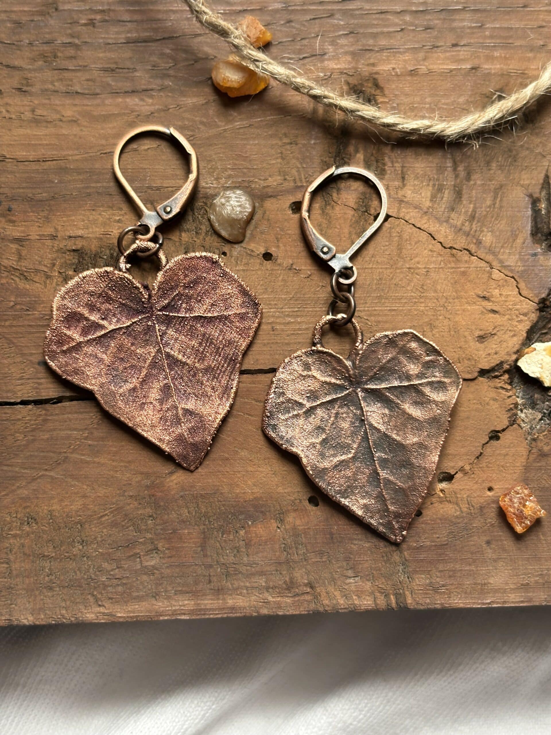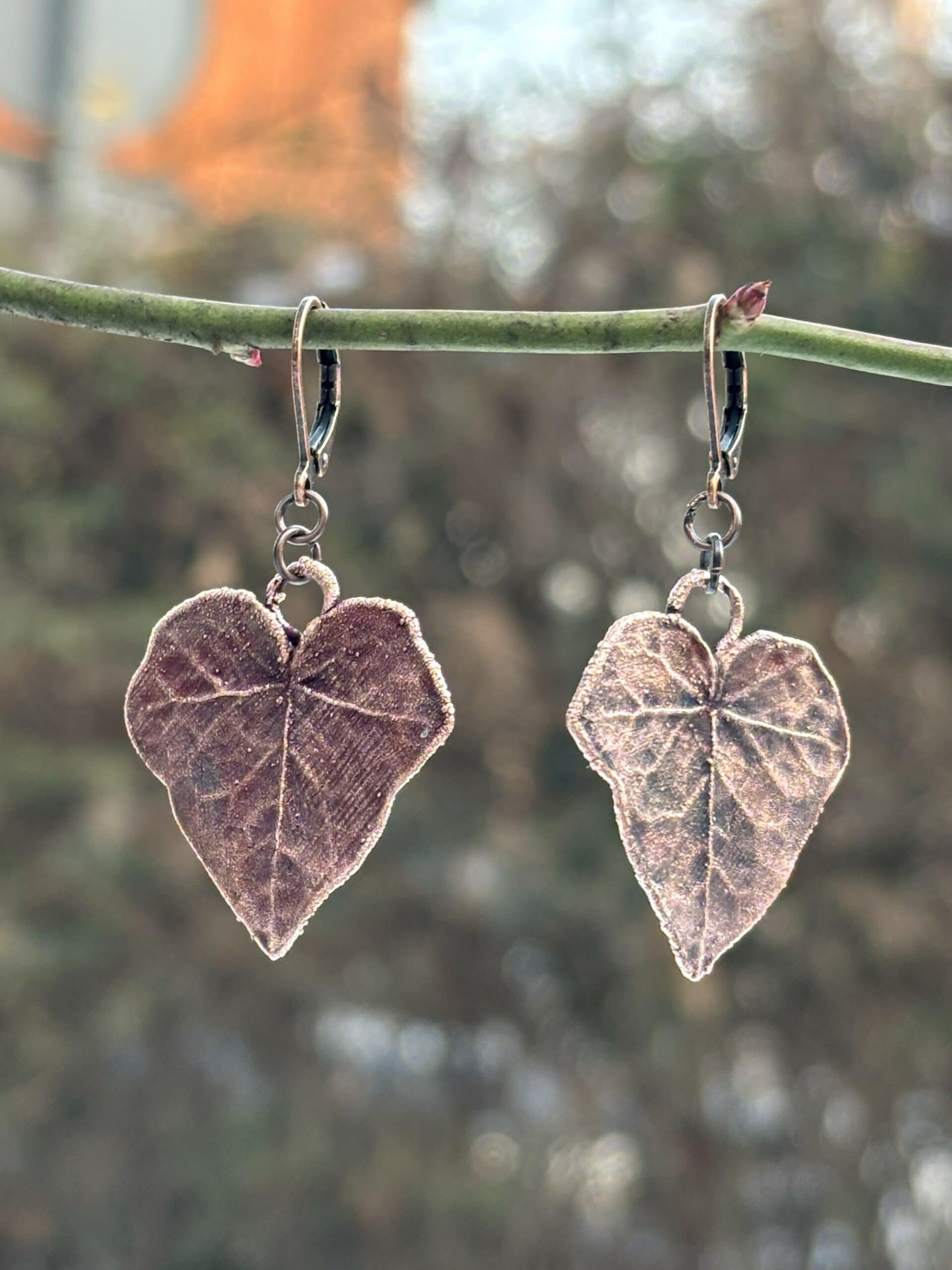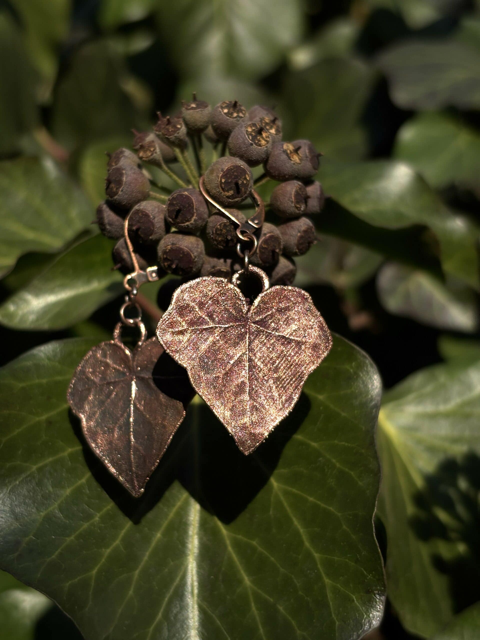 Opis Kolczyki z miedzi – liście bluszczu