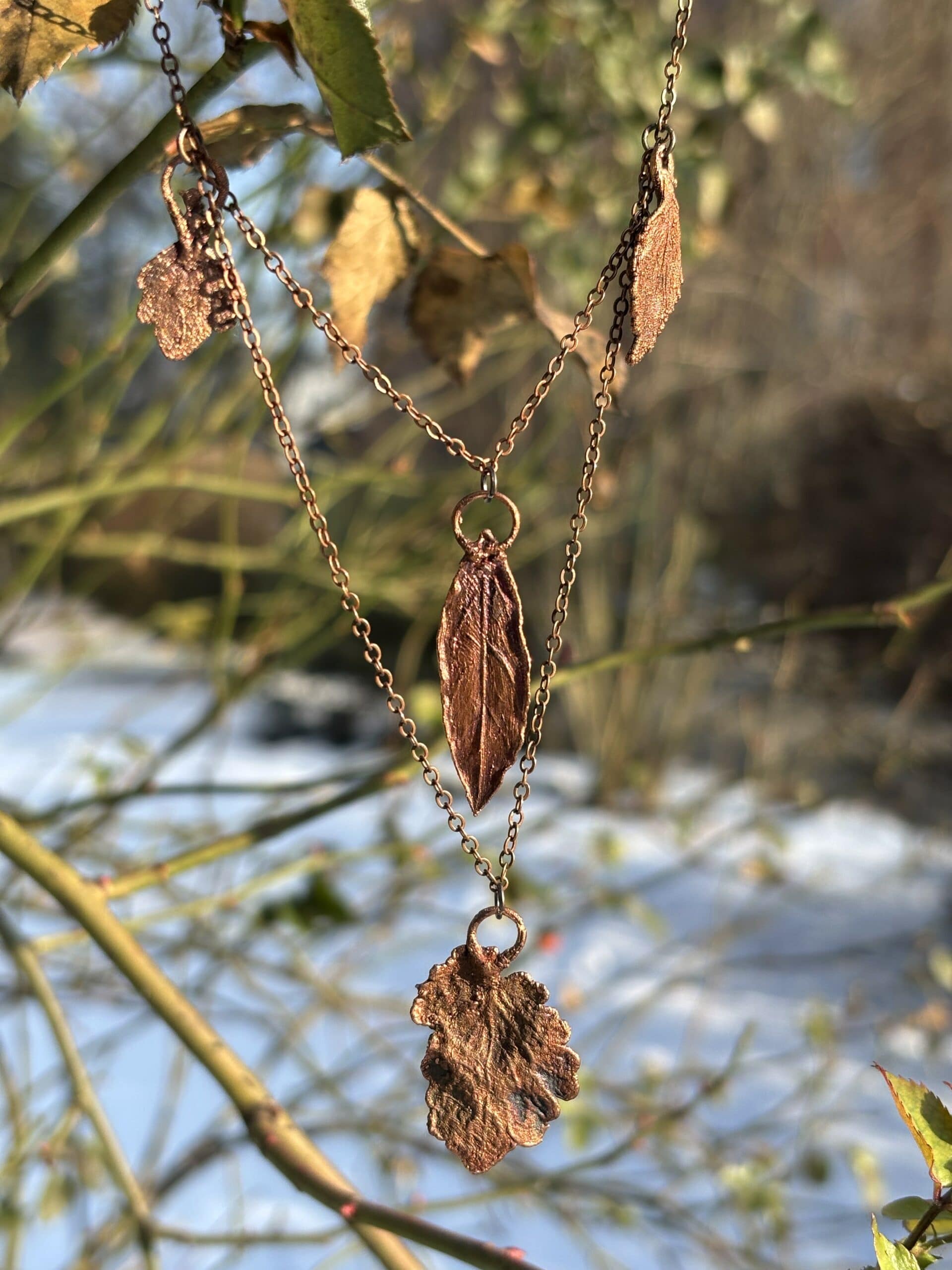 Opis Miedziany naszyjnik z liści